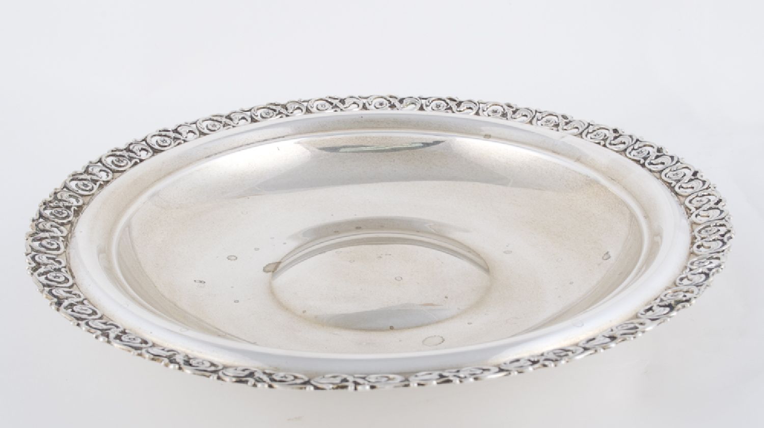CENTROTAVOLA tondo in argento con bordo traforato (g. 495). Italia XX secolo Misure: diametro cm 33