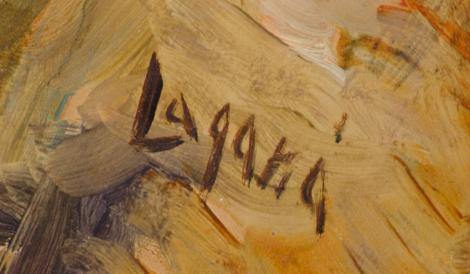 COSTANTINO LAGANA' (Palermo 1921) OLIO su masonite "figura femminile in maschera". Misure: cm 80 x 60