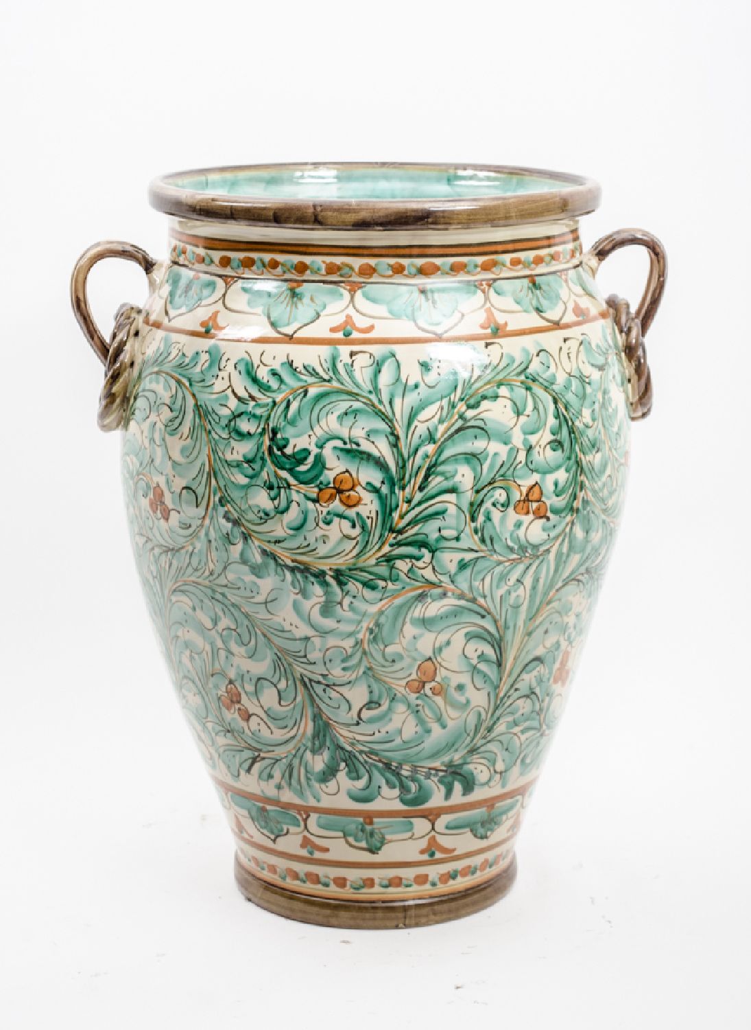 VASO in ceramica smaltata e decorata. XX secolo Misure: diametro cm 30 x h 50