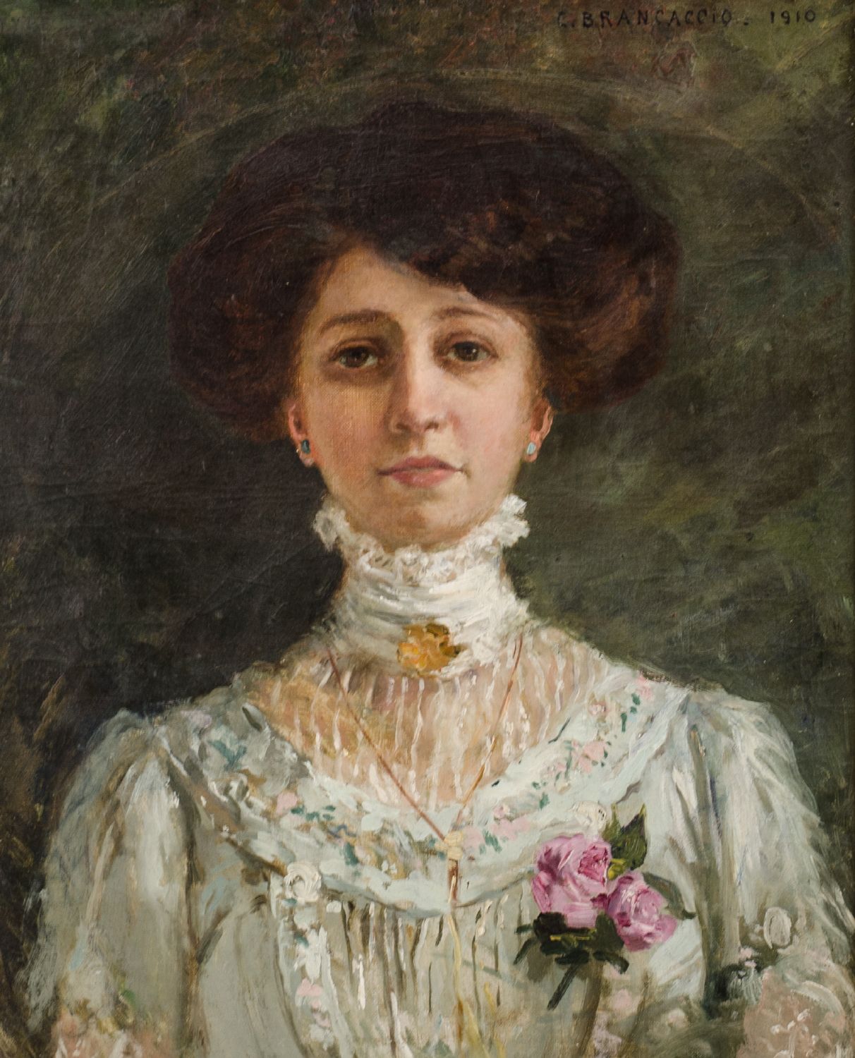 CARLO BRANCACCIO (1861 - 1920) OLIO su tela "ritratto di gentildonna" firmato e datato a destra. 1910 Misure: cm 44,5 x 54,5