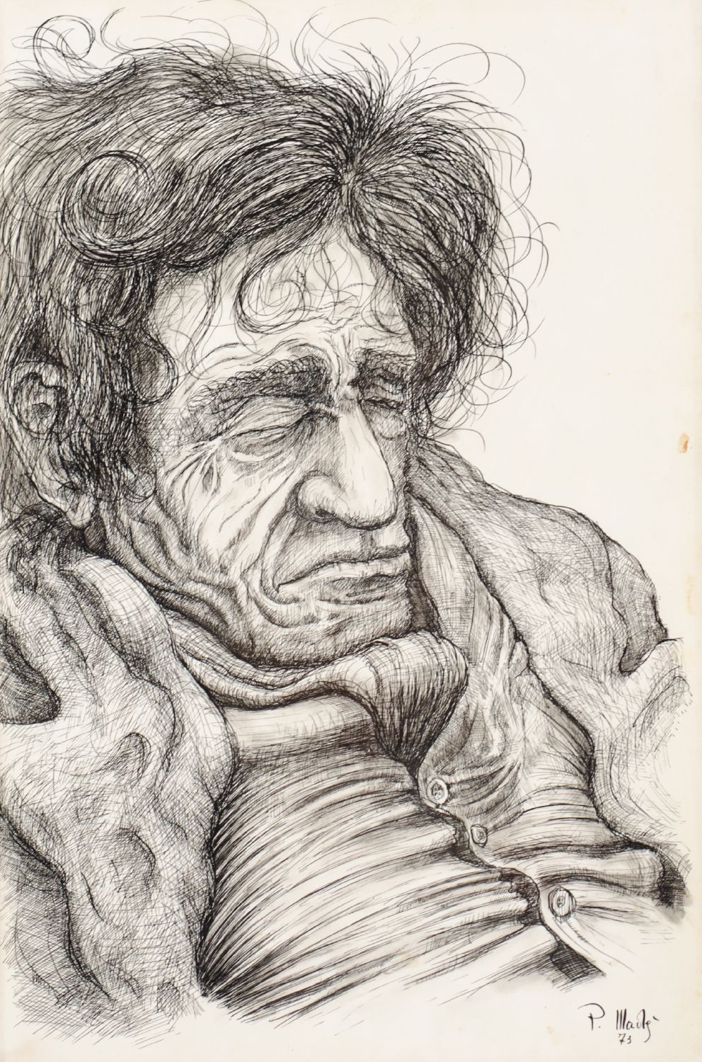 PIPPO MADE' (Palermo 1936) CHINA su carta "personaggio a riposo" firmato in basso a destra. Datato 1973 Misure: cm 33,5 x 50