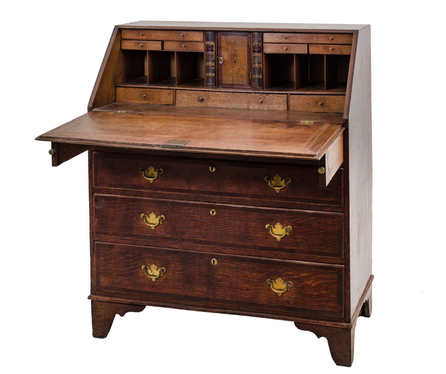 RIBALTA in rovere con cassettiera interna e quattro cassetti sottostanti. Scozia fine '700 Misure: cm 98 x 49 x h 119