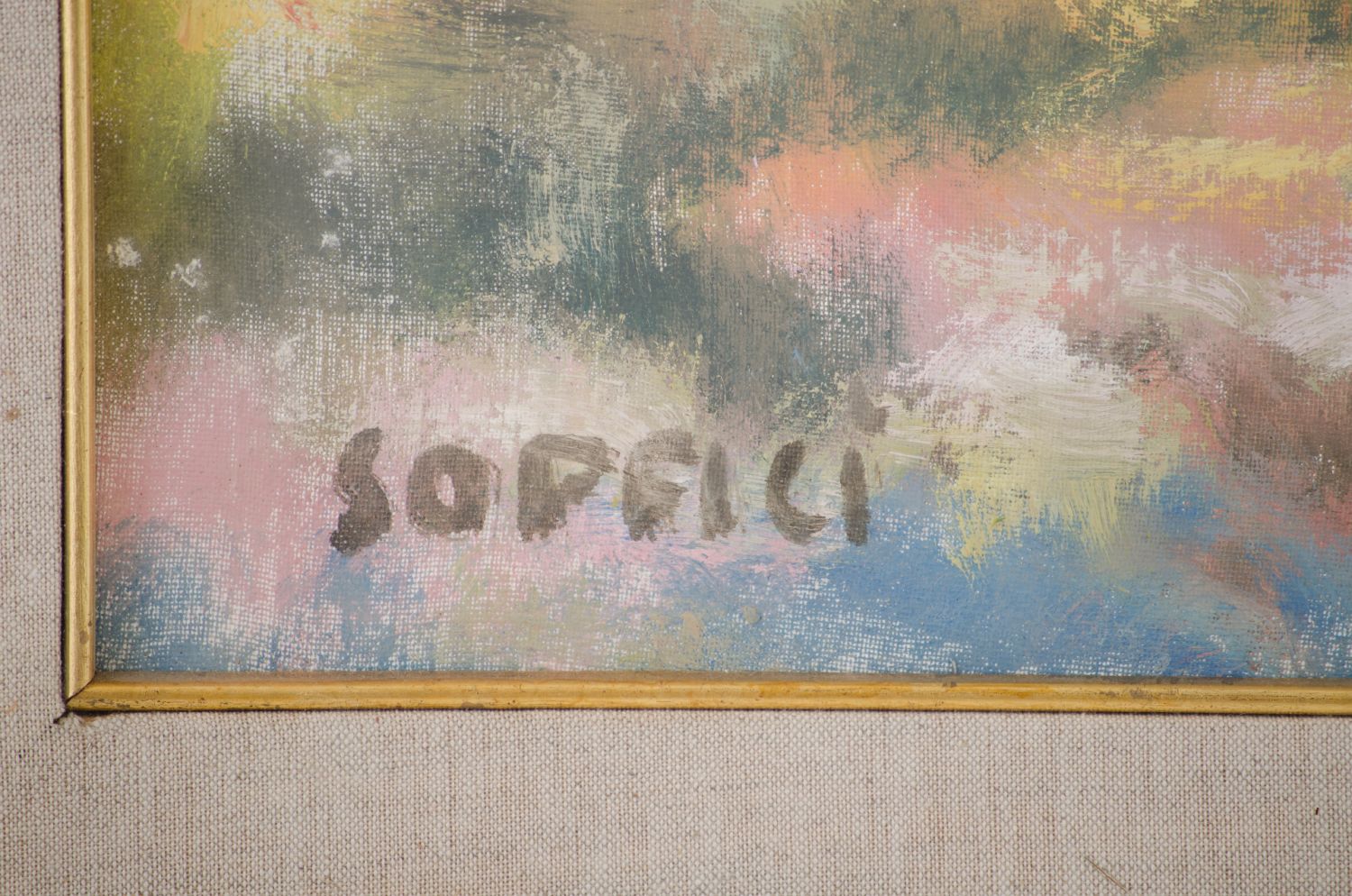 ARDENGO SOFFICI (Attr.le) (Rignano sull'Arno (Fi) 1879 - Vittoria Apuana (Lu) 1964) OLIO su cartone telato "paesaggio" firmato in basso a sinistra. Misure: cm 70 x 50