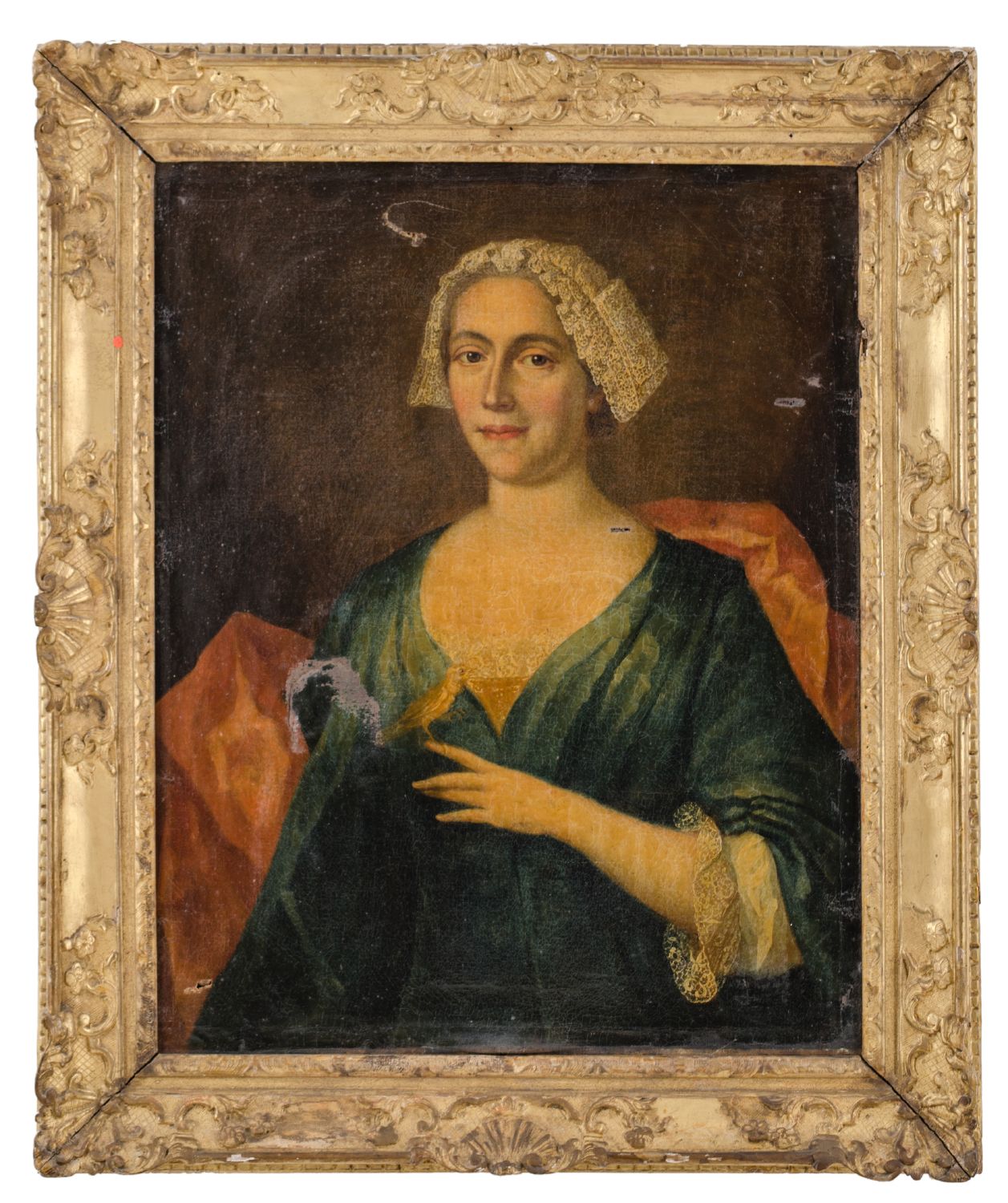 OLIO su tela "ritratto di gentildonna" entro cornice coeva dorata ad oro zecchino (difetti nella tela). Italia XVIII secolo Misure: cm 65 x 82
