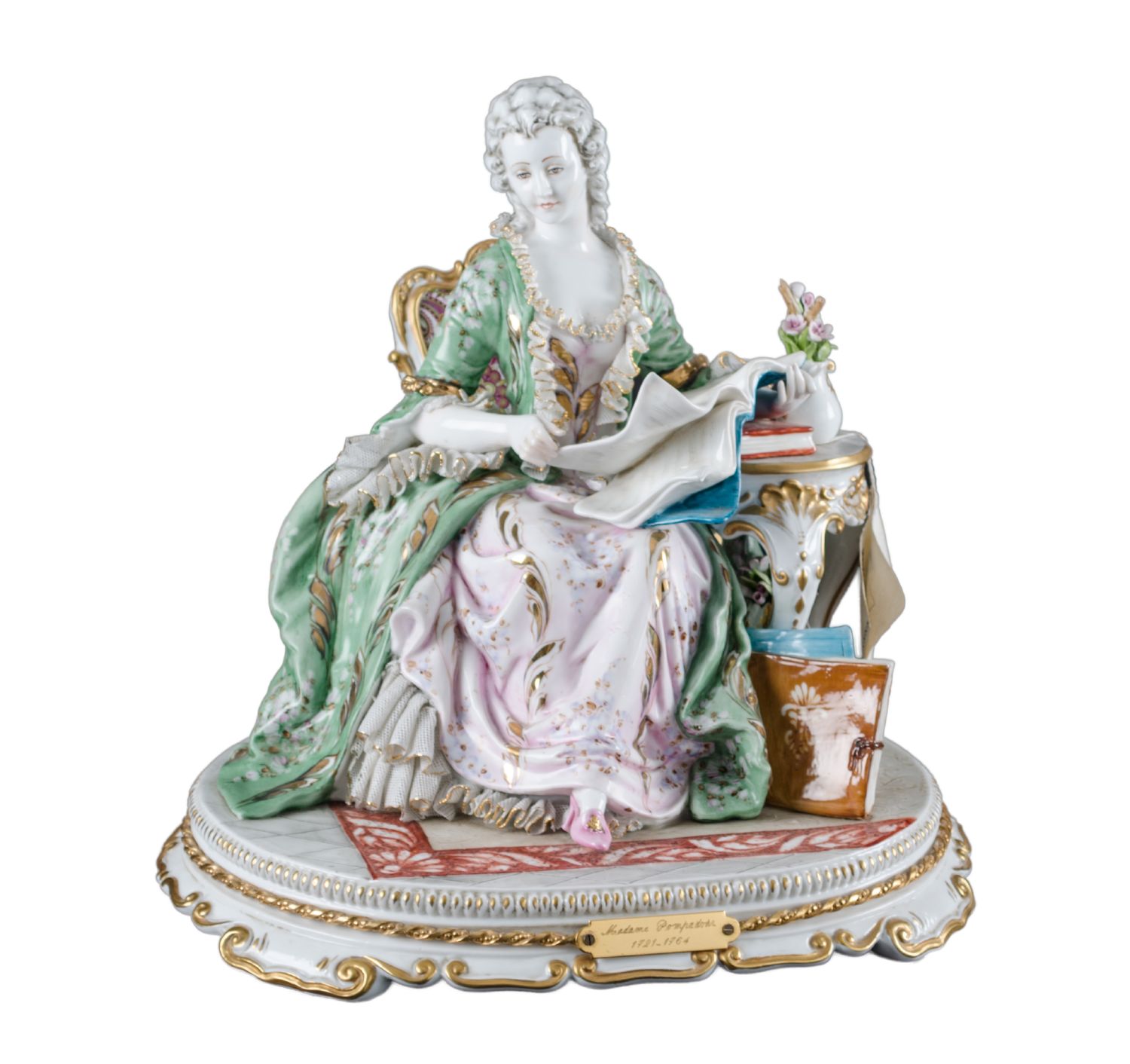 GRUPPO in porcellana decorata a mano raffigurante "dama in lettura"....