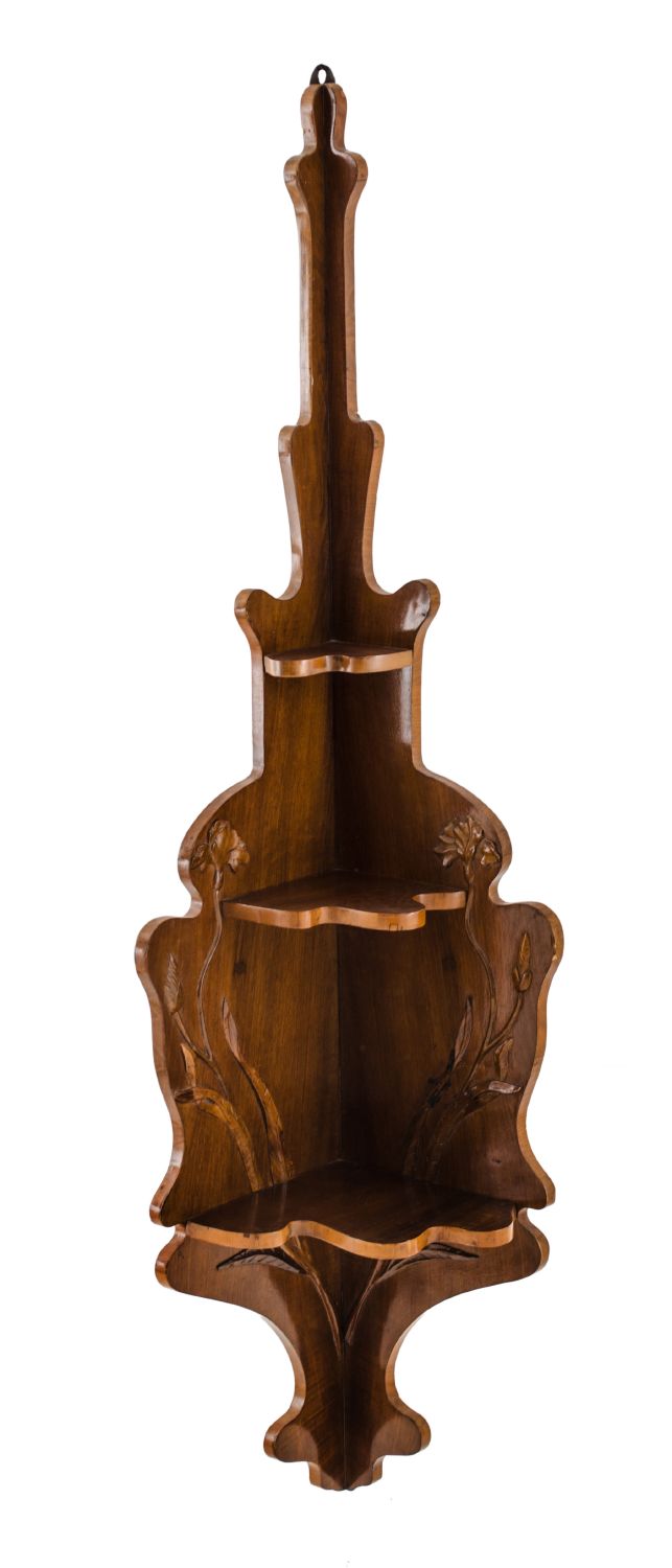 MENSOLA angolare in palissandro. Periodo Liberty primi ’900 Misure: cm 44 x 32,5 x h 157