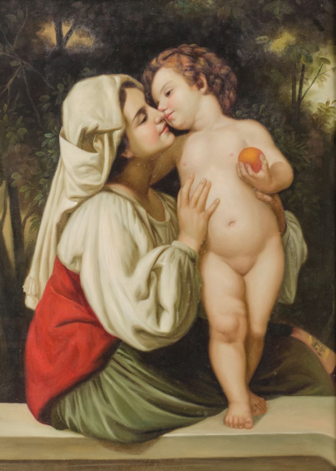 OLIO su cartone "maternita'" (sul retro presenta targhetta dello stabilimento del Prof. Salvatore Valenti - Palermo). Primi '900 Misure: cm 50 x 67