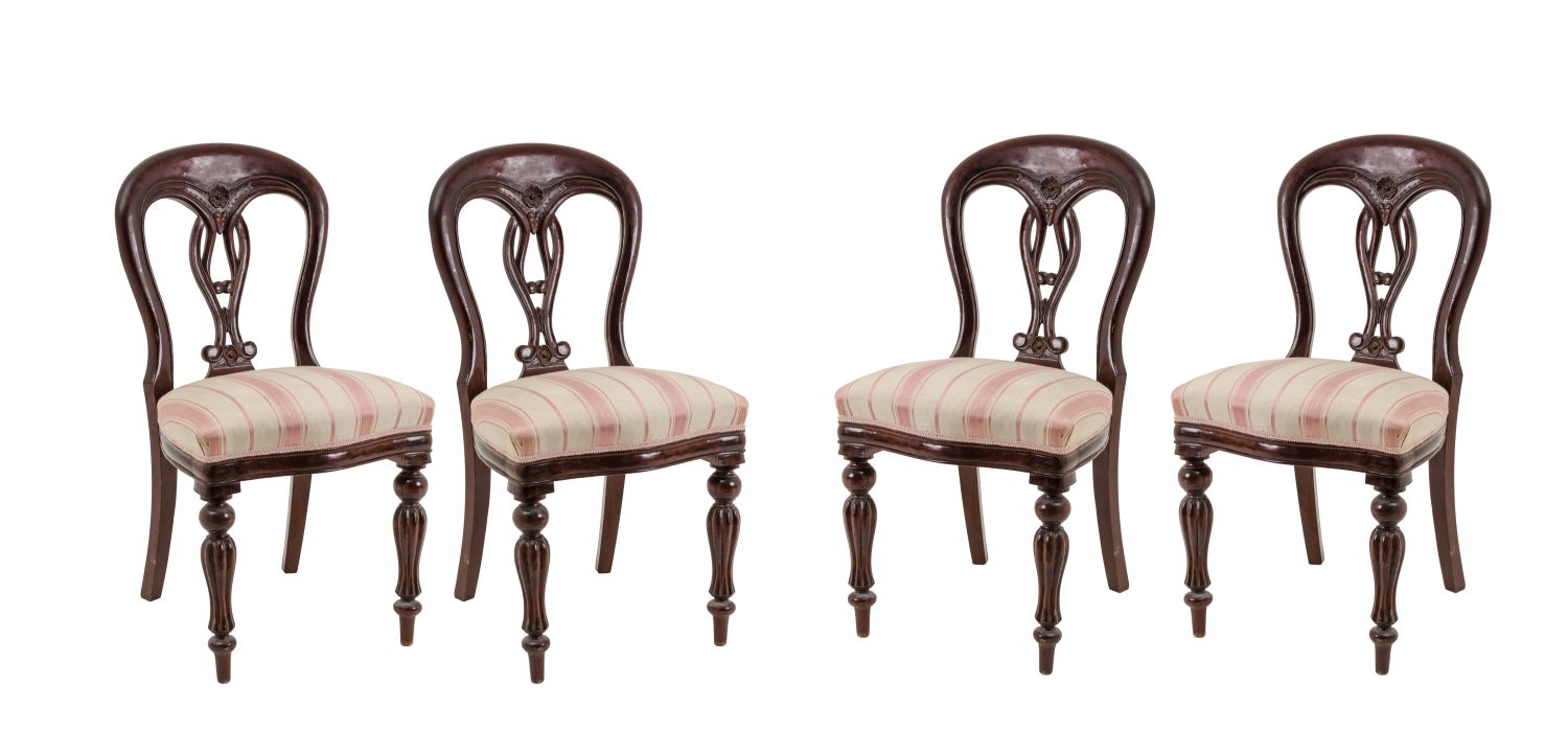 QUATTRO SEDIE stile Vittoriane in mogano (seduta h cm 53). Inghilterra XX secolo Misure: h cm 90