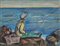 GINO BAGNARI (Ravenna 1907) PASTELLO "paesaggio costiero con pescatore". Misure: cm 38 x 29