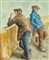 PIPPO MADE' (Palermo 1936) OLIO su tela "personaggi al muretto", firmato in basso a destra. Misure: cm 50 x 60