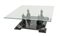 TAVOLINO da centro con base in marmo nero, piano in vetro sorretto da quattro...
