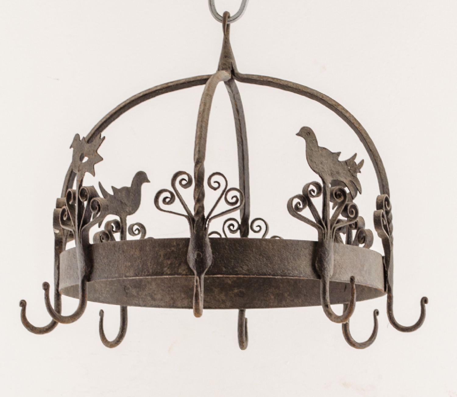 APPENDI rame da cucina in ferro. Francia XX secolo Misure: diametro cm 42 x h 34