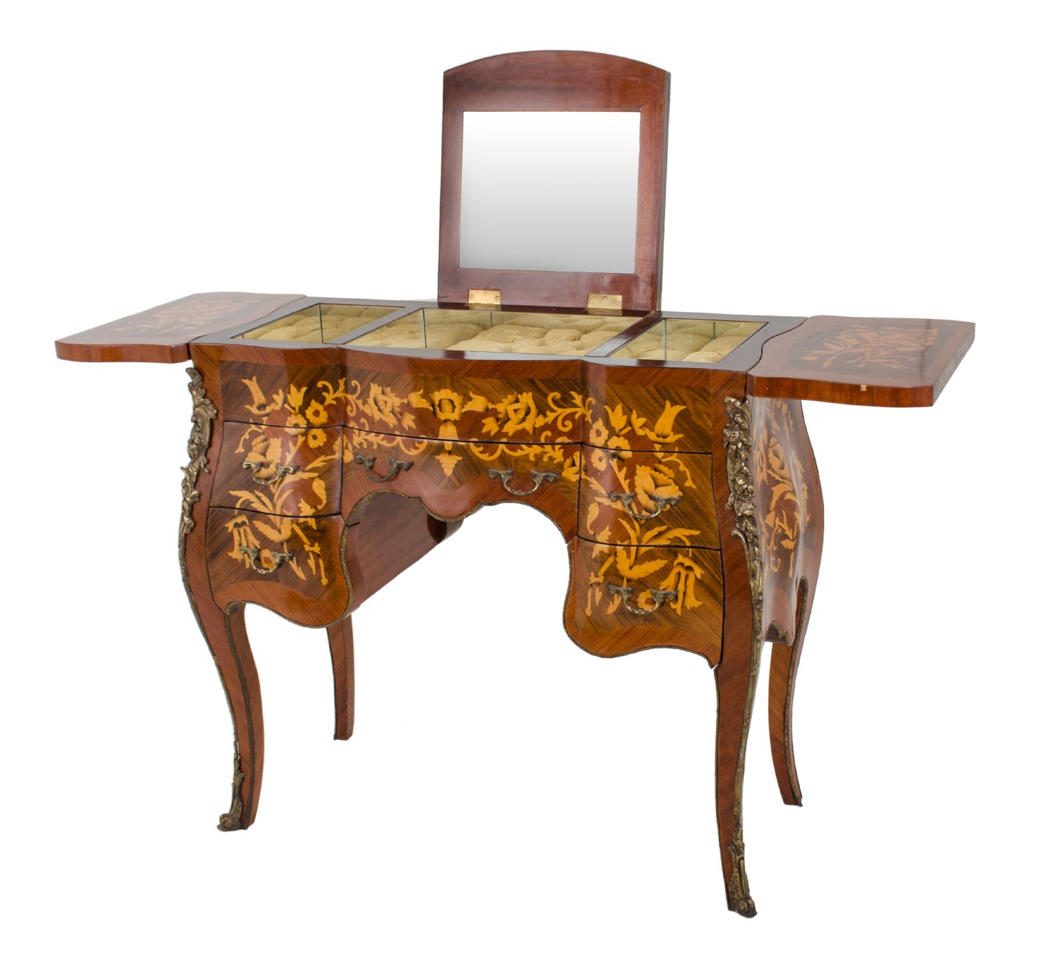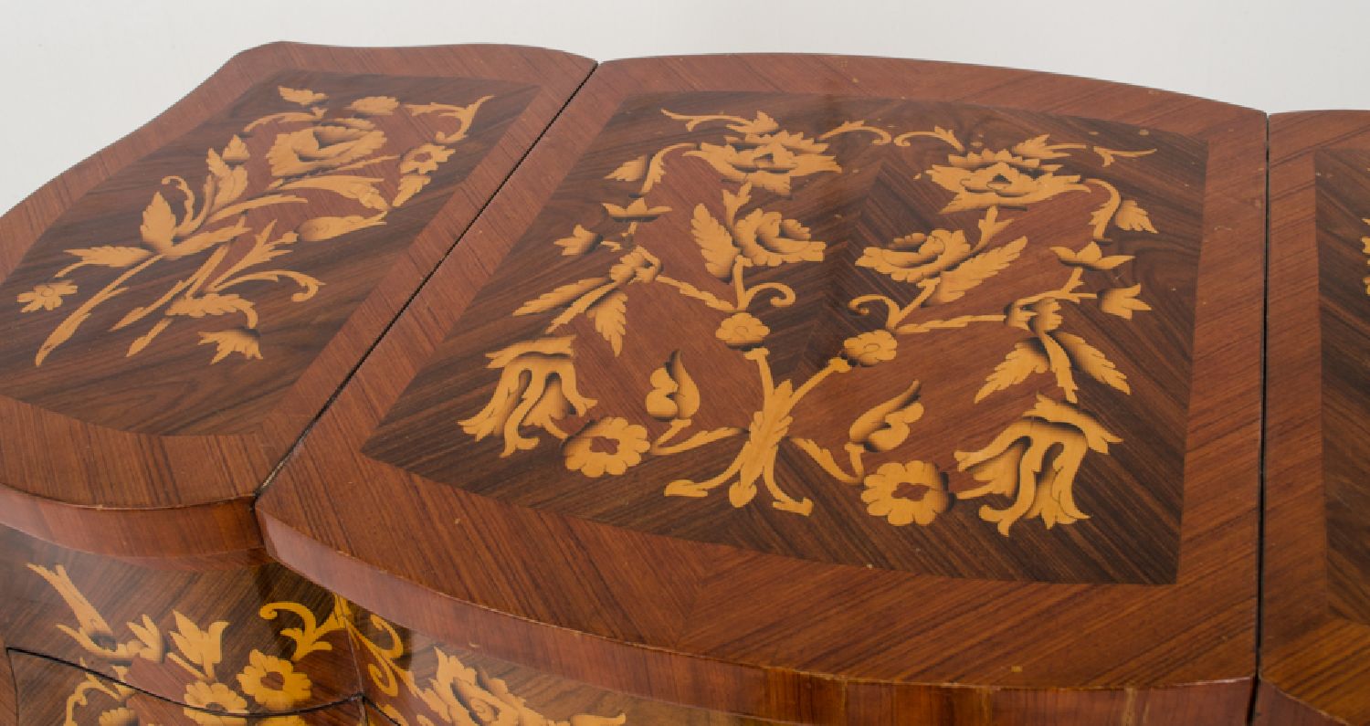TOLETTA stile Luigi XV a cinque cassetti in palissandro e legno di rosa,...