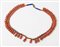 COLLANA in corallo indiano lavorato a balestra, sfere in pasta di vetro. 1960