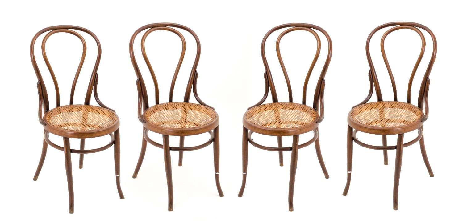 QUATTRO SEDIE Thonet in faggio curvato a fuoco (seduta h cm 46). Primi '900 Misure: h cm 90