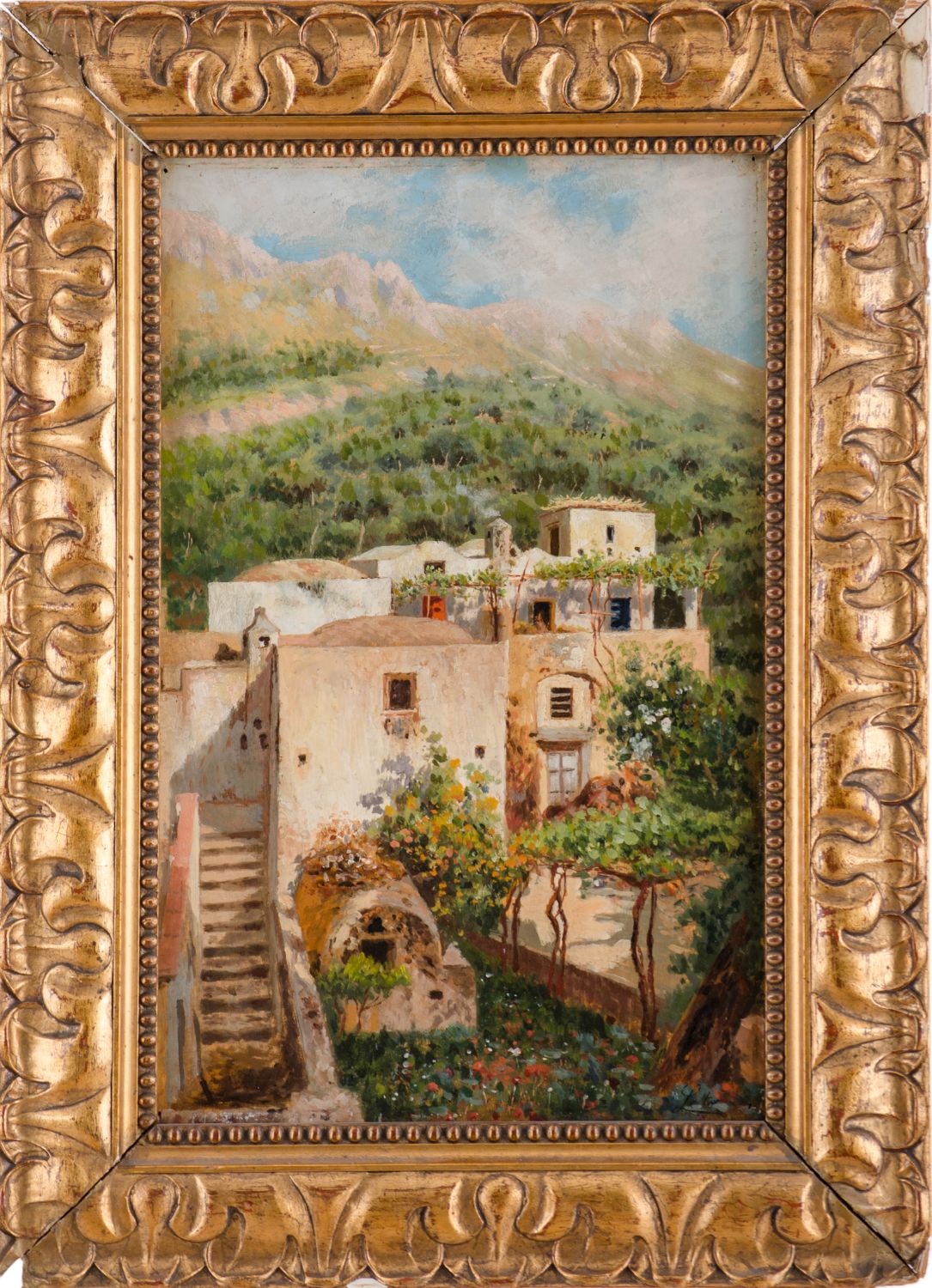 ANTONINO LETO (Monreale 1844 - Capri 1913) RARO OLIO su tavoletta "Anacapri" firmato in basso a destra. Misure: cm 25,5 x 41