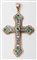 CROCE in oro basso titolo 14 Kt. ed argento 925 con diamantini, rose corone' e smeraldi. Primi '900
