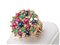 CURIOSO ANELLO a bouquet in oro giallo 18 Kt. con piccoli cabotion di zaffiri, rubini, smeraldi e diamantini.