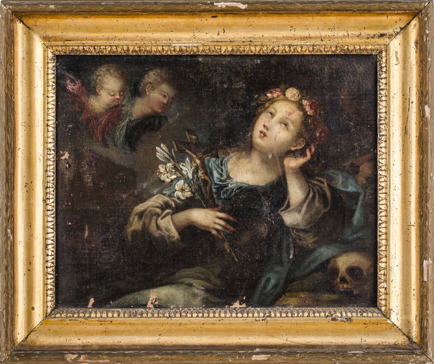 OLIO su tela "Santa Rosalia" entro cornice a canna ciaccata in legno dorato...