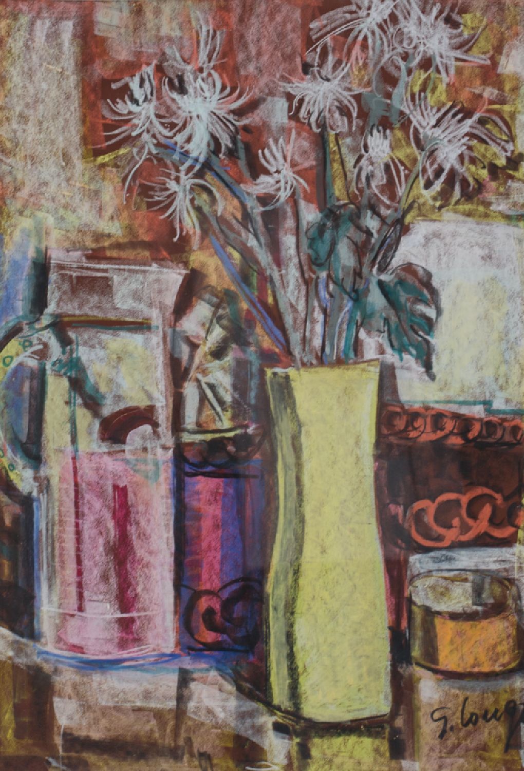 GIUSEPPE LONGO (Torino 1958) TECNICA mista su cartoncino "natura morta", firmato i basso a destra. Misure: cm 44 x 64