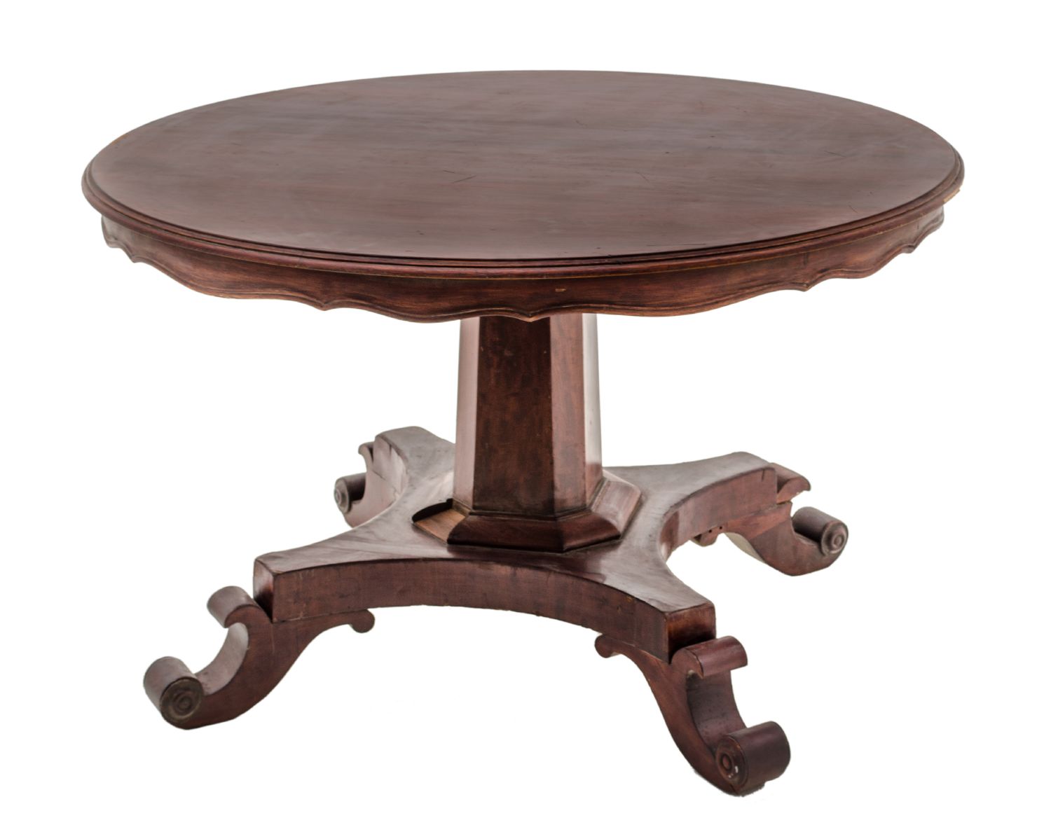 TAVOLO tondo in mogano. Inghilterra XIX secolo Misure: diametro cm 120 x h 71
