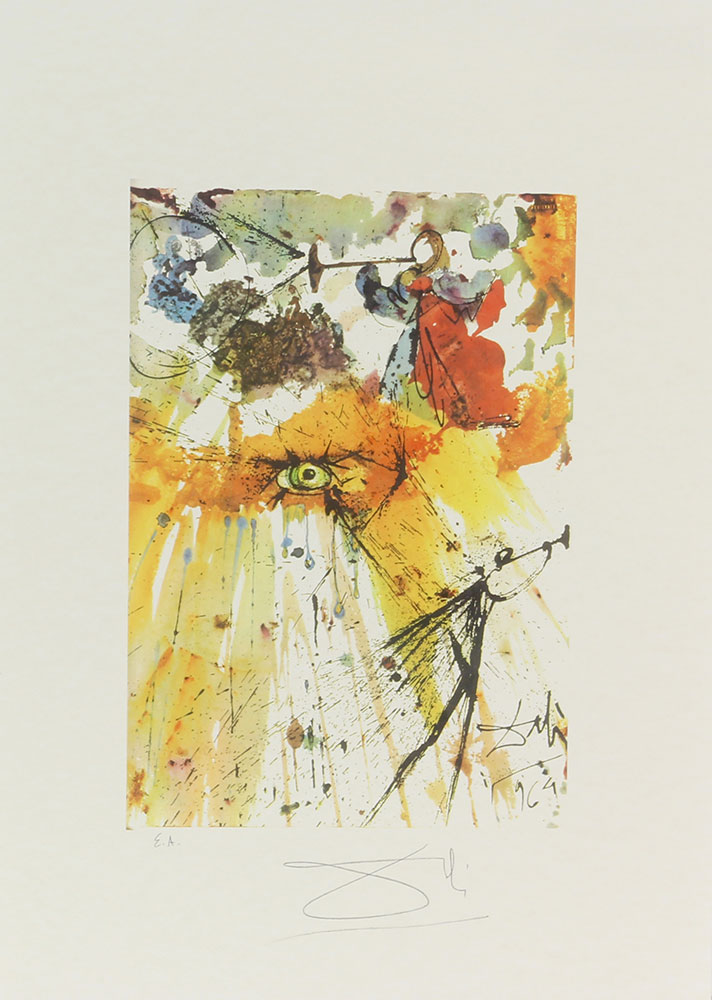Dalì Salvador Senza titolo litografia su carta, cm. 45x32, es. E.A. firmata in basso a destra, timbro a secco in basso a sinistra, Edición Gaceta Española de Arte Contemporáneo di Madrid