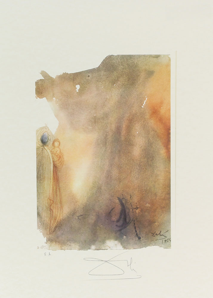Dalì Salvador Senza titolo litografia su carta, cm. 45x32, es. E.A. firmata in basso a destra, timbro a secco in basso a sinistra, Edición Gaceta Española de Arte Contemporáneo di Madrid
