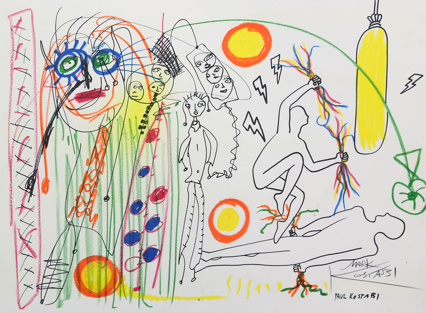 Kostabi Paul & Mark Power Players, 2010 tecnica mista su cartoncino, cm. 56x77 firmata, intitolata e datata al retro