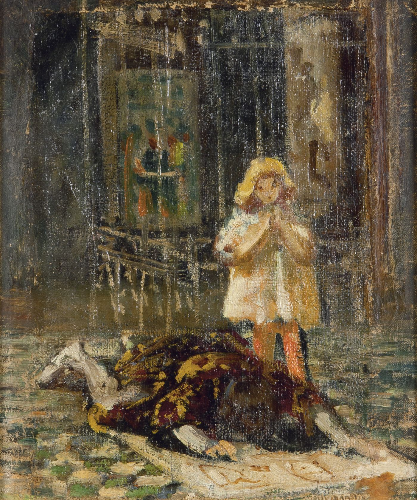 FARUFFINI FEDERICO (Sesto San Giovanni (MI) 1831 - 1869 Perugia) - "Madonnaro", 25x19,5 olio su tela. Opera firmata al retro