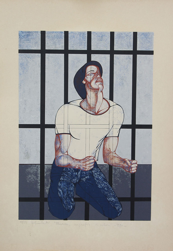 Galimberti (artista non identificato) Presenze, 1980 serigrafia a 14 colori su carta, cm. 70x50, es. 49/99 firmata, intitolata e datata in basso