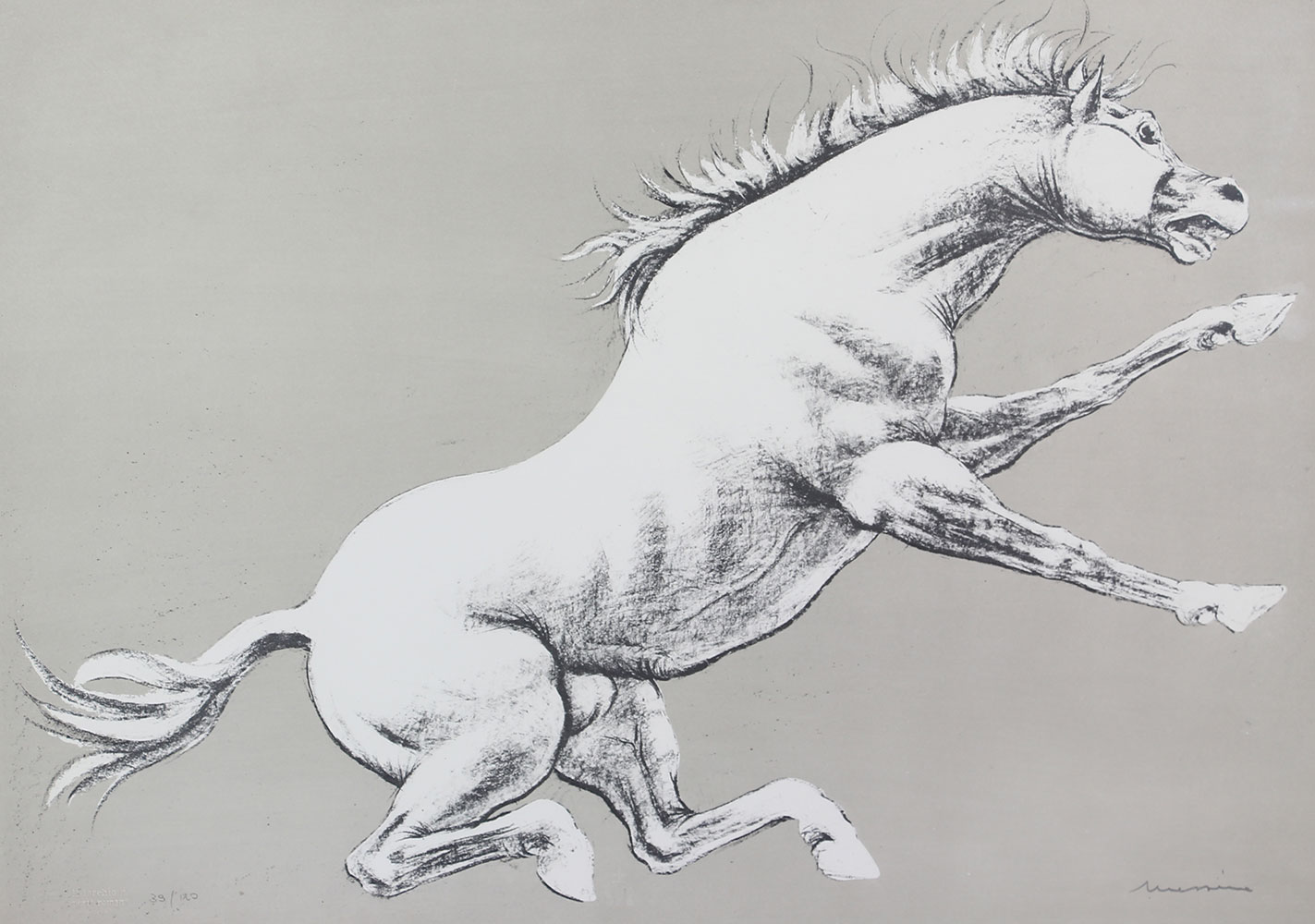 Messina Francesco Cavallo litografia su carta, cm. 50x70, es. 39/120 firmata in basso a destra, timbro a secco "Il Torchio di Porta Romana" in basso a sinistra