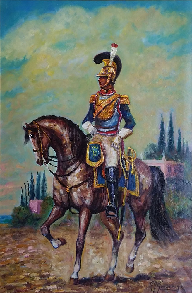 Gonzaga Giovan Francesco Guardia del Corpo del Regno di Vestfalia olio su tela, cm. 60x40 firmato in basso a destra, firmato e intitolato al retro, perizia su fotografia della Galleria Conte Arte di Milano