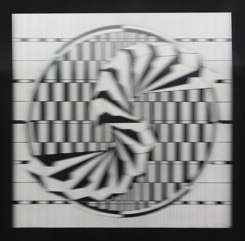 Baldessari Guido Strutture in Divenire, 1972 tecnica mista su cartoncino e plexiglass zigrinato, cm. 70x70 firma e numero di archivio al retro, etichetta con archiviazione e timbro "Guido Baldessari - Venezia" al retro, certificato di autenticità della Galleria Anti Arte Contemporanea di Venezia con firma e timbro dell'artista