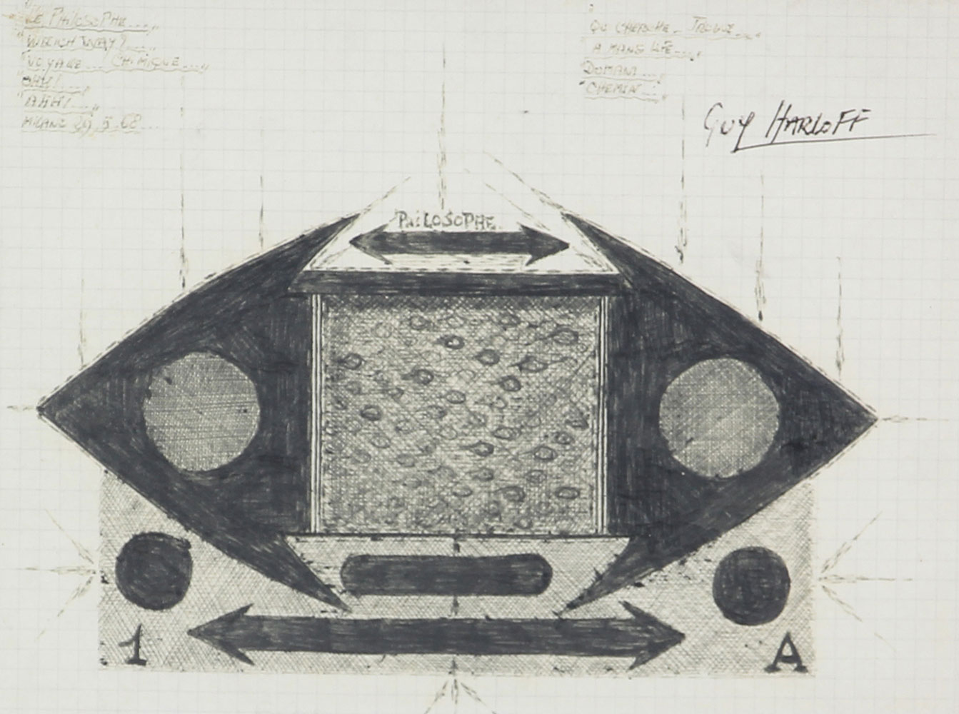Harloff Guy Le Philosophe, 1968 inchiostro su carta, cm. 14,5x19 firmato in...