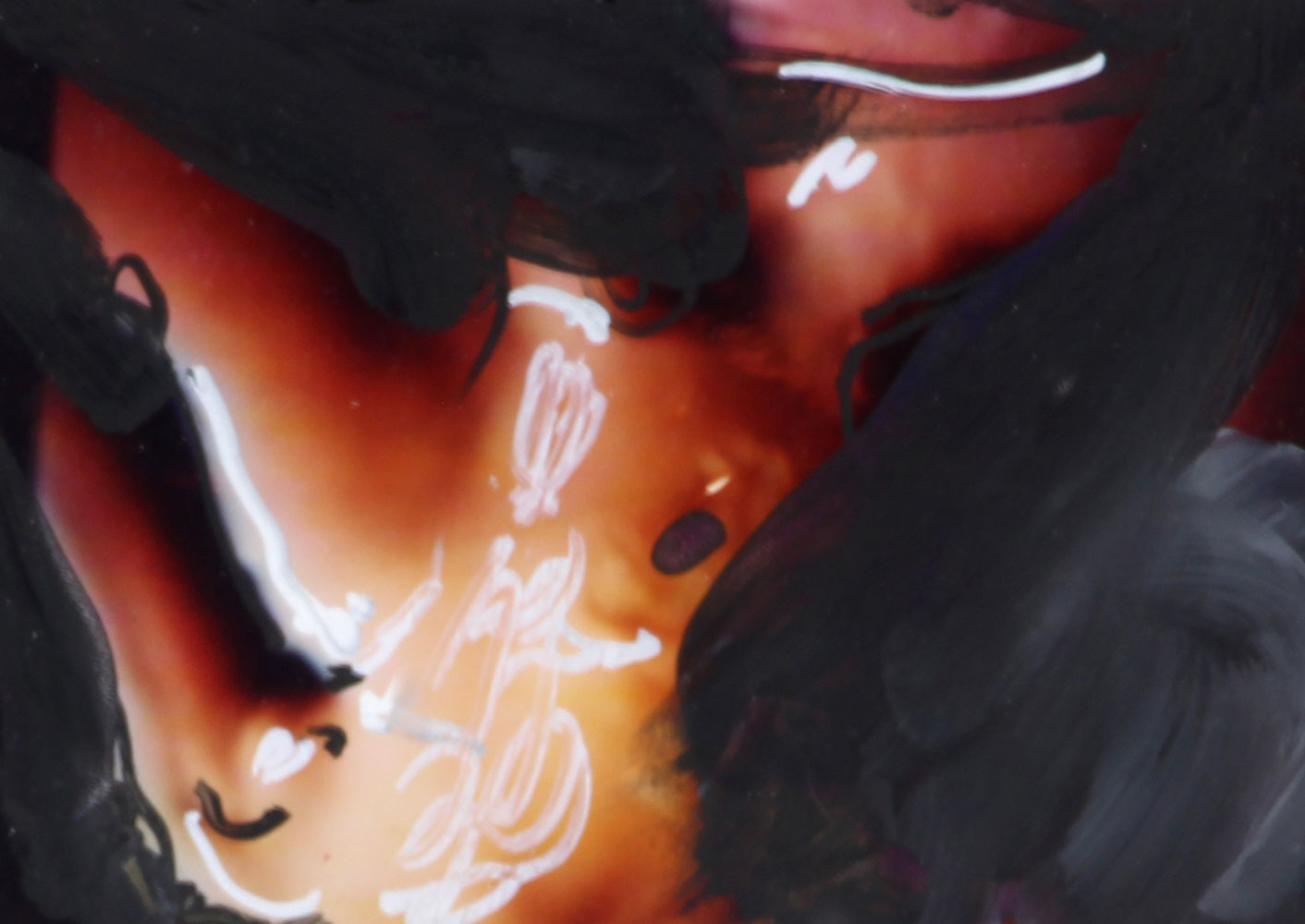 Schifano Mario Senza titolo tecnica mista su fotografia, cm. 10x15 firmata al retro, certificato di autenticità della Galleria Mazzoli di Modena su fotografia
