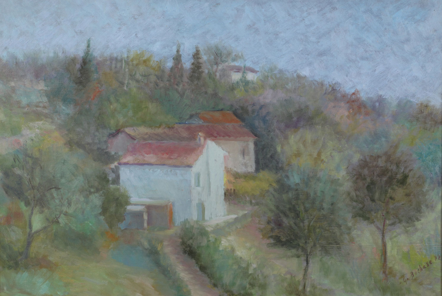Lotto 341 | Bochese Giorgio Case nel Bosco, 1972 olio su tavola, cm. 44x63 firmato e...