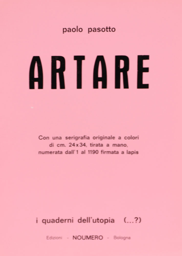 Pasotto Paolo Artare quaderno contenente una serigrafia tirata a mano, cm. 34,5x24,5, es. 174/1190 la serigrafia è firmata in basso a destra, I quaderni dell'utopia (…?), edizioni Noumero, Bologna