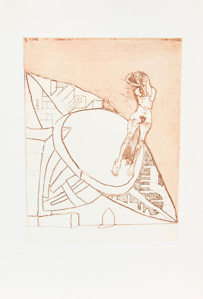 Fieschi Giannetto Senza titolo incisione e calcografia su cartoncino Fabriano, cm. 100x68, es. 17/90 firmata in basso a destra, sono presenti tracce di umidità senza cornice