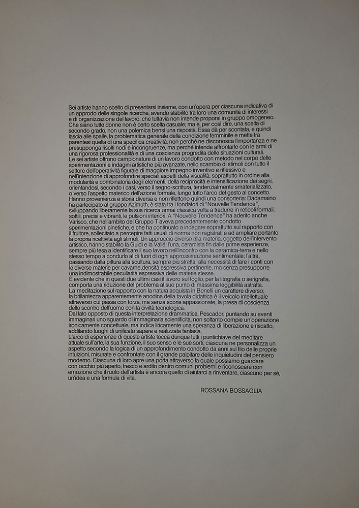 AA.VV. Senza titolo cartella contenente 5 litografie, cm. 50x70 opere di: Alessandra Bonelli, Dadamaino, Nedda Guidi, Lucia Pescador, Thea Valle e Grazia Varisco