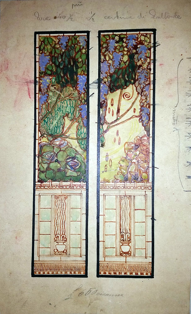 Chini Galileo Studio per vetrata acquerello su carta, cm. 24,5x15 perizia su fotografia della Galleria Conte Arte di Milano senza cornice