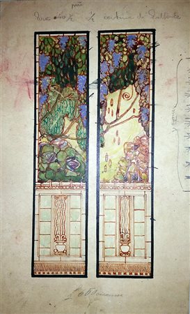 Chini Galileo Studio per vetrata acquerello su carta, cm. 24,5x15 perizia su...