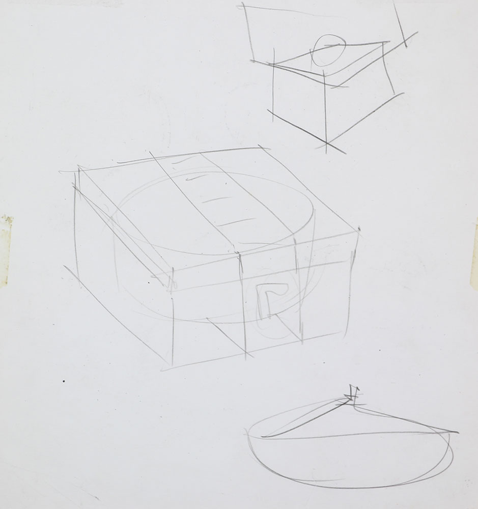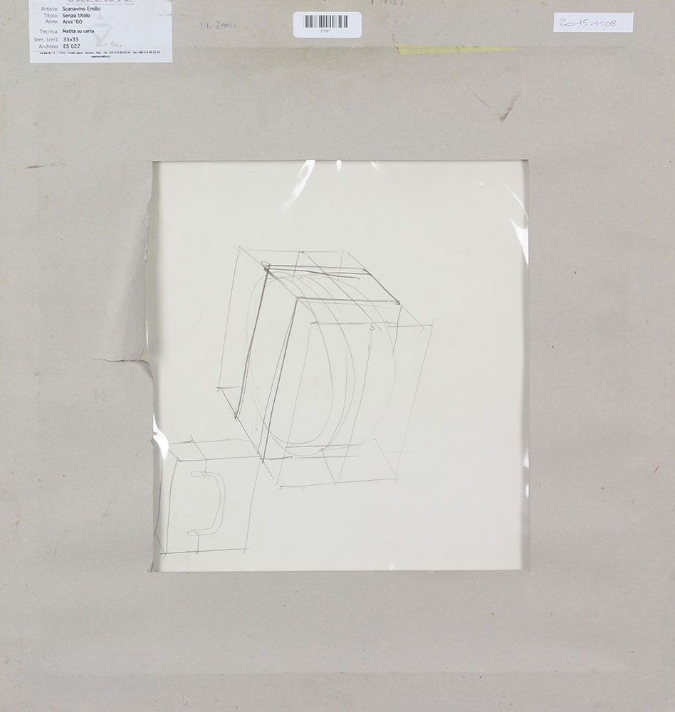 Scanavino Emilio Senza titolo, (Anni '60) matita su carta, cm. 35x35 l'opera presenta un altro disegno al retro, etichetta Galleria Valente Arte Contemporanea di Finale Ligure al retro della cornice