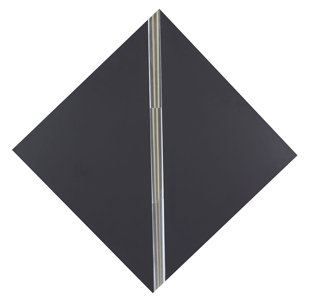 Alviani Getulio Superficie a Testura Vibratile e Laminato Plastico, 1971 alluminio e laminato plastico su tavola, cm. 70,5x70,5 firmato, intitolato e datato al retro, timbro Galleria Melesi di Lecco al retro, certificato di autenticità della Galleria Melesi di Lecco firmato dall'artista su fotografia