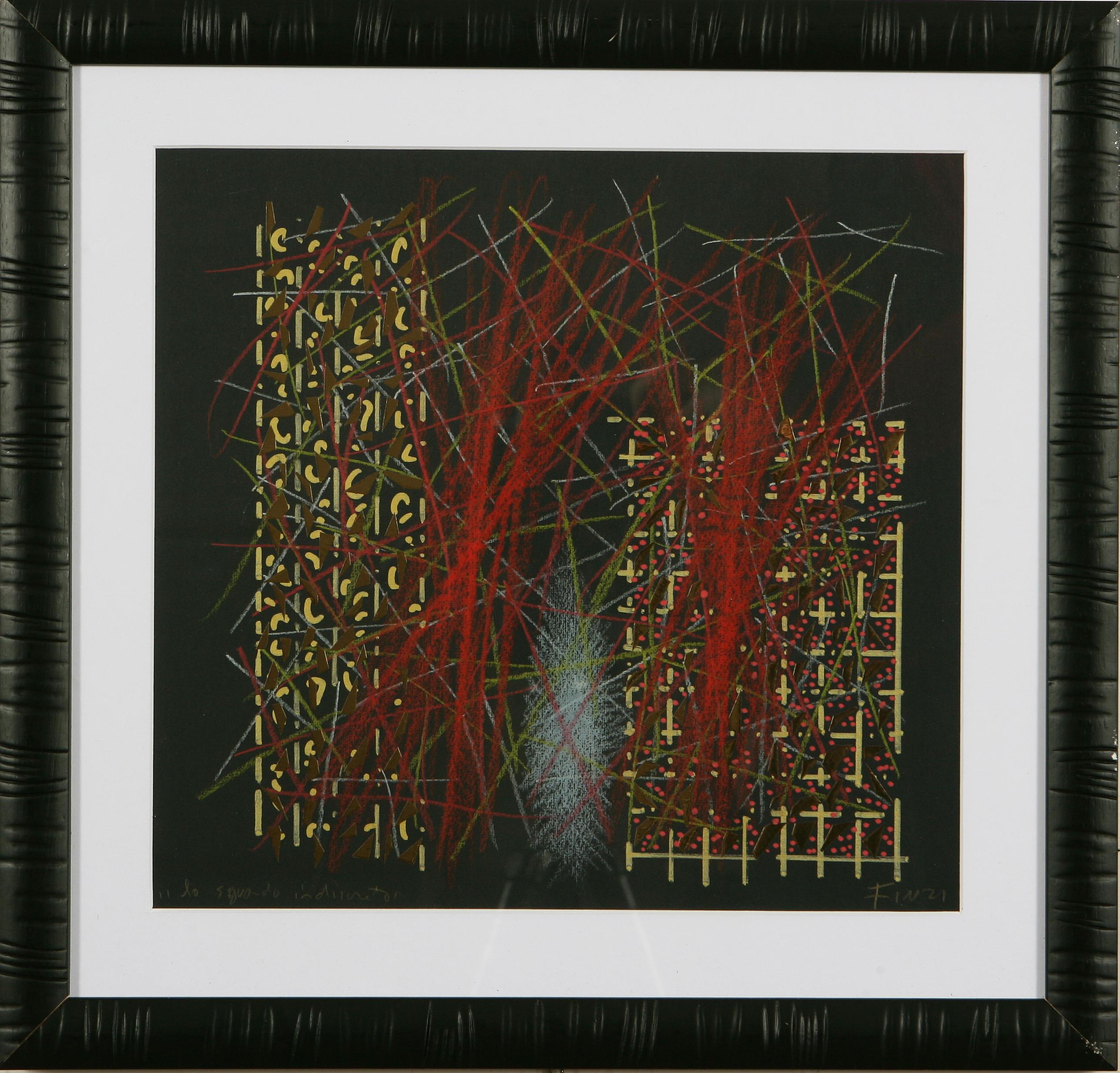 FINZI ENNIO (n. 1931) Firma in basso a destra, titolo in basso a sinistra. Autentica dell'artista su fotografia. Tecnica mista su cartoncino Cm 35x33
