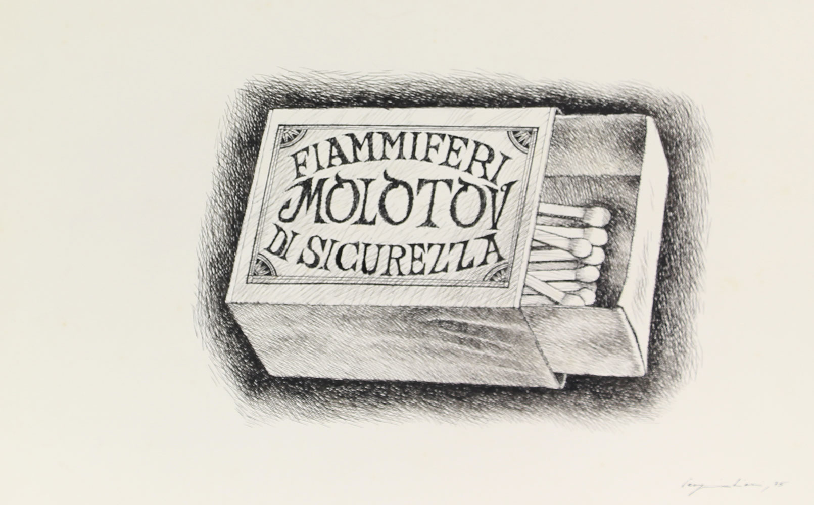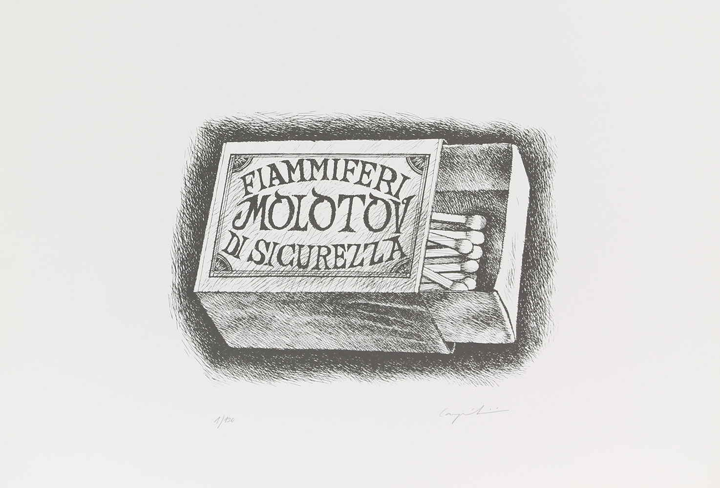 Campintieri Lotto composto da una litografia su carta e una china su carta, litografia cm. 49x69,5 - china cm. 40x60 la litografia es. 1/120 è firmata in basso a destra, la china è datata 1975 ed è firmata e datata in basso a destra senza cornice