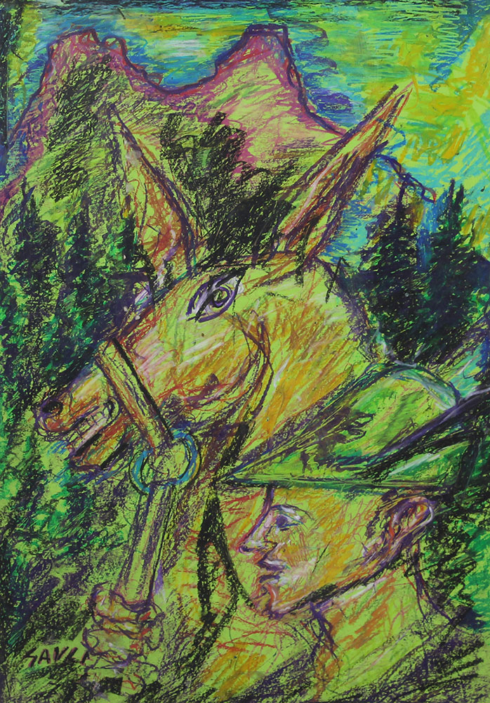 Gauli Piero Io e il Mulo Barone al 3° Art. Alpina Giulia (a Gorizia), 2010 tecnica mista su carta, cm. 70x50 firmata in basso a sinistra