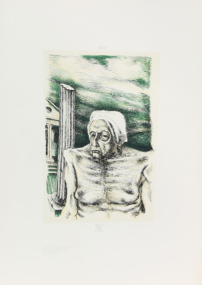 Mucchi Gabriele Il Vate, 1988 litografia su carta, cm. 70x50, es. 67/100 firmata, intitolata e datata in basso al centro, dedicata in basso a sinistra senza cornice