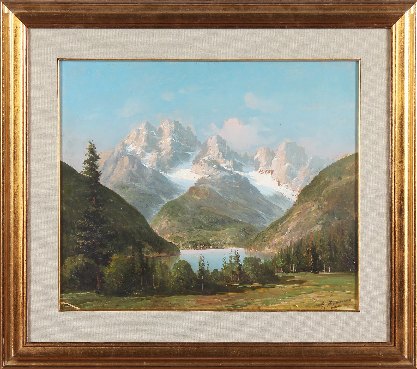 BONACINA GIUSEPPE (n. 1955) Paesaggio. Olio su cartone pressato. Cm 58,00 x 48,00. Firma in basso a destra. L'opera presenta una mancanza di colore in basso a sinistra. Cornice presente