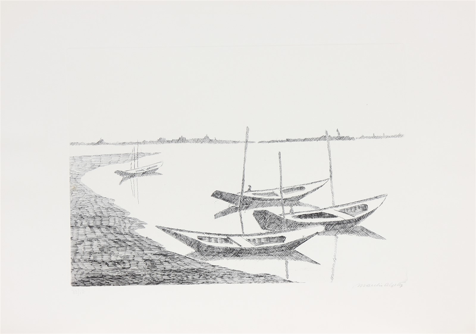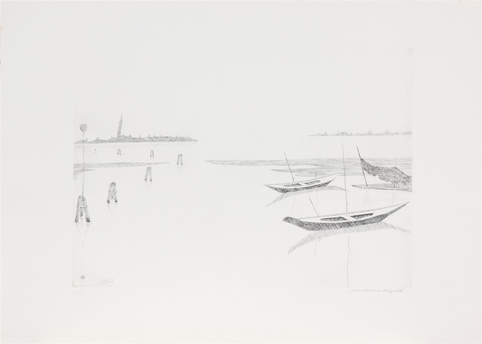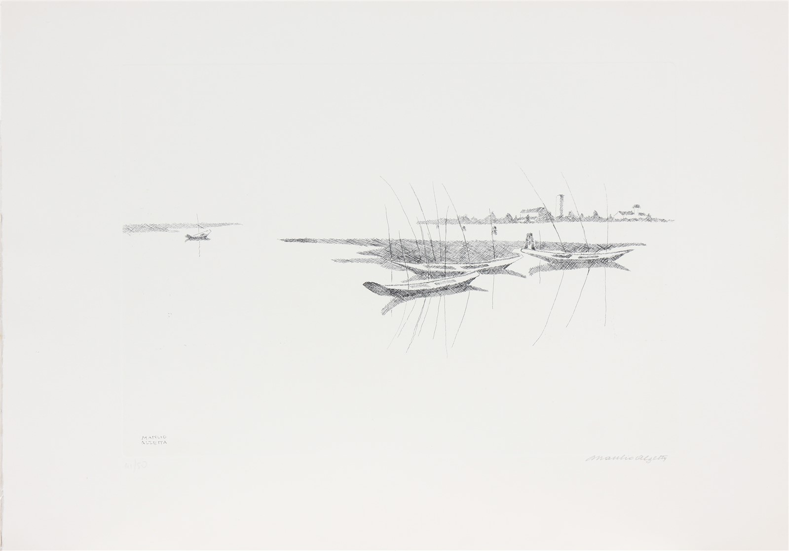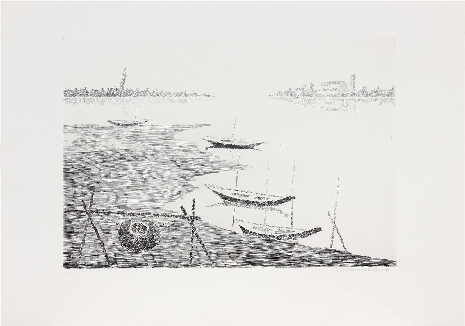 ALZETTA MANLIO (1920 - 2000) Lotto composto da n. 5 grafiche. . Acquaforte. Cm 50,00 x 35,00. 41/50 e 32/50. Tutte le grafiche presentano tiratura e firma a matita in basso.