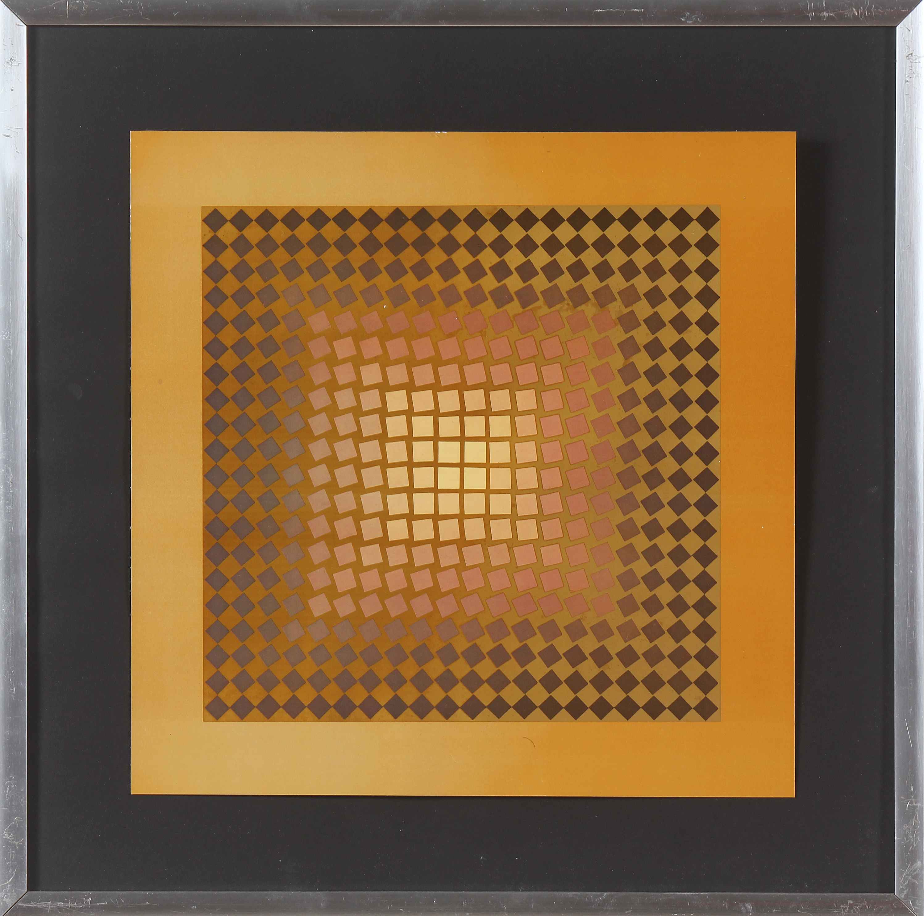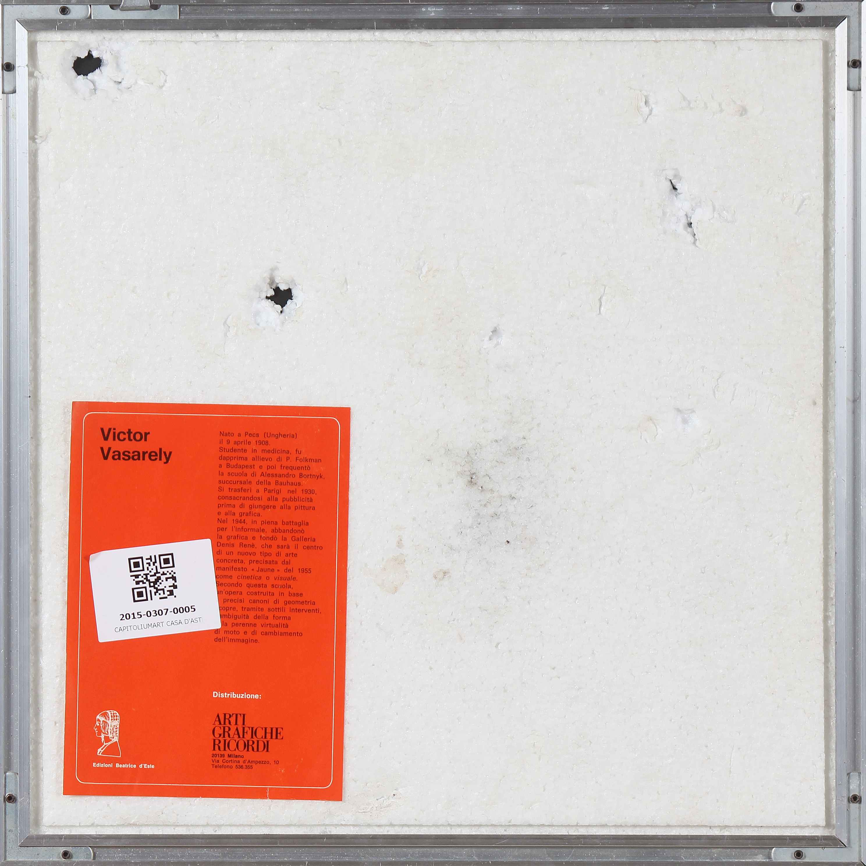 VASARELY VICTOR (1906 - 1997) Senza titolo. Serigrafia. Cm 21,00 x 21,00. Al retro cartiglio biografico a cura di Arti grafiche Ricordi, Milano. Cornice presente